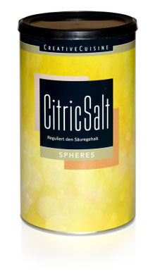 Die Sphärisierung ist eine Kochtechnik, die 2003 erstmals im ElBulli angewandt wurde. Die Flüssigkeit geliert bei dieser Technik so, dass eine membranartige Außenhülle, die einen flüssigen Kern umschließt, entsteht – eine sogenannte Sphäre. Voneinander unterschieden werden die Techniken der Basis-Sphärisierung und die praktikablere und deswegen häufiger ausgeführte Inverse-Sphärisierung. CitricSalt wird in der Basis-Sphärisierung eingesetzt.